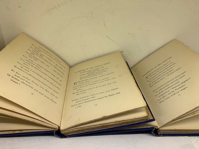 Methuen ‘Service Edition’ of Kipling’s works: Poetry with a military theme, particularly of the English Raj period of time late in Queen Victoria’s reign.