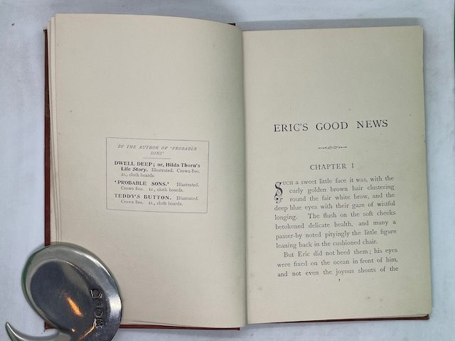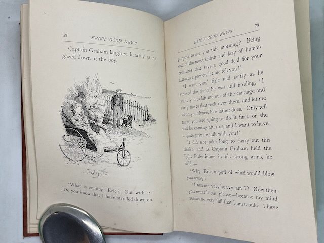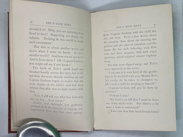 Young Eric was disappointed as he sat trying to get well. Captain Graham, a stranger he met on the beach, became a good friend. One day his dog retrieved an old book, the Gospel of Mark, from the ocean and it was used by God for opening his mind to Jesus. Eventually Eric’s whole disposition was changed and he was made happy in Christ. Eric became a positive influence in the lives of those around him. A quote from the book: “‘Ah! well!’ he muttered, ‘I envy that child’s faith and happiness, and more than half feel inclined to follow his example. It is not a religion he has got hold of, but a real PersonÑit makes a vast difference, I fancy!'”