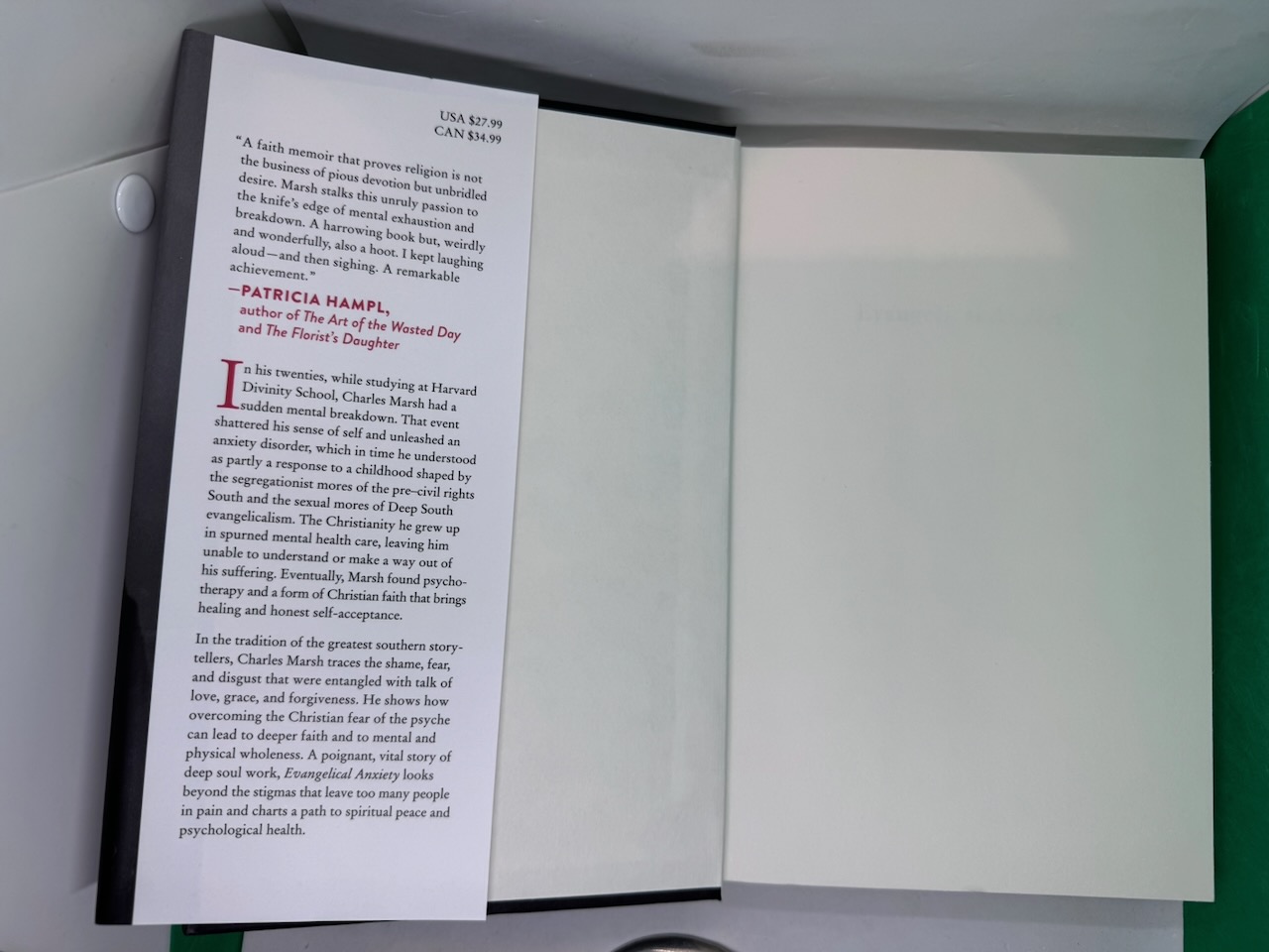 In this riveting spiritual memoir, the writer, scholar, and commentator tells the story of his struggles with mental illness, explores the void between the Christian faith and scientific treatment, and forges a path toward reconciling these divergent worlds. For years, Charles Marsh suffered panic attacks and debilitating anxiety. As an Evangelical Christian, he was taught to trust in the power of God and His will. While his Christian community resisted therapy and personal introspection, Marsh eventually knew he needed help. To alleviate his suffering, he made the bold decision to seek medical treatment and underwent years of psychoanalysis. In this riveting spiritual memoir, Marsh tells the story of his struggle to find peace and the dramatic, inspiring transformation that redefined his life and his faith. He examines the tensions between faith and science and reflects on how his own experiences offer hope for bridging the gap between the two. Honest and revealing, Marsh traces the roots of shame, examines Christian notions of sex, faith, and mental illness and their genesis, and chronicles how he redefined his beliefs and rebuilt his relationship with his community. A poignant and vital story of deep soul work, Evangelical Anxiety helps us look beyond the stigma that leaves too many people in pain and offers Evangelicals a way forward to find the help they need while remaining true to their beliefs.