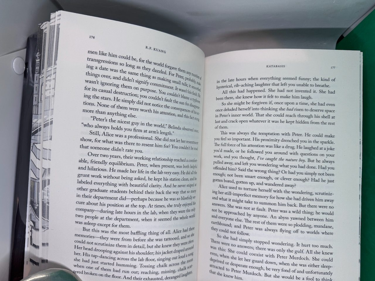 Katabasis, noun, Ancient Greek. The story of a hero’s descent to the underworld. Grad student Alice Law has only ever had one goal: to become the brightest mind in the field of analytic magick. But the only person who can make her dream come true is dead and Ð inconveniently Ð in Hell. And Alice, along with her biggest rival Peter Murdoch, is going after him. But Hell is not as the philosophers claim, its rules are upside-down, and if sheÕs going to get out of there alive, she and Peter will have to work together. ThatÕs if they can agree on anything. Will they triumph, or kill each other trying? Literary super-stardom doesn’t seem too far out of her reach’ THE HERALD ÔMind-bending fantasyÕ GRAZIA R.F. Kuang’s book ‘Katabasis’ was a No.1 Sunday Times bestseller w/c 2025-09-01.