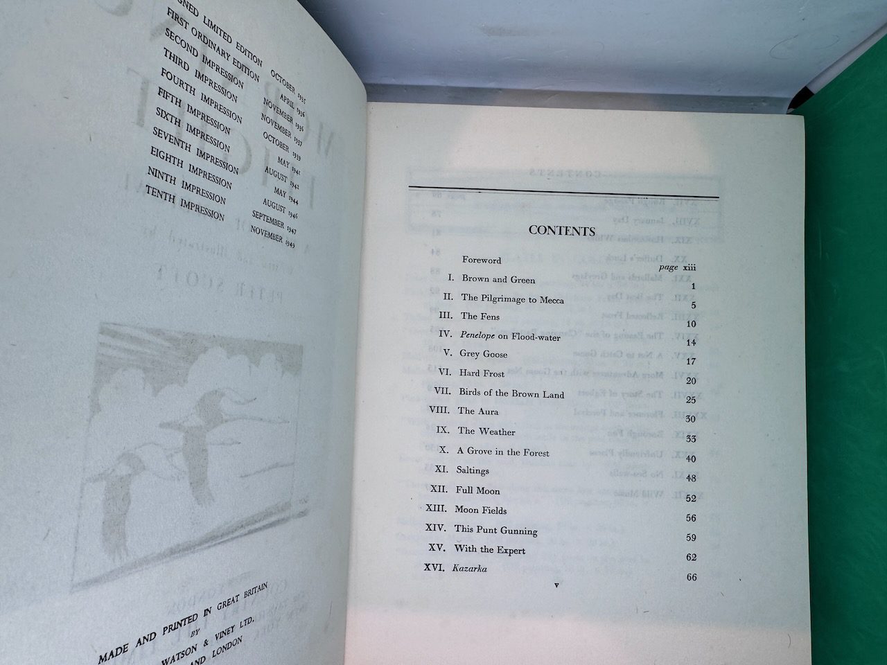 Peter Scott made most of his wildfowl studies in the marshes of East Anglia, and this book (his first of many) first came out in 1936. The Times: It is safe to say that no one else could bring off the right and left, write the text and paint these glorious illustraitons.