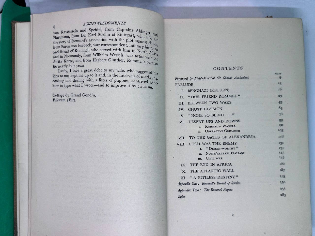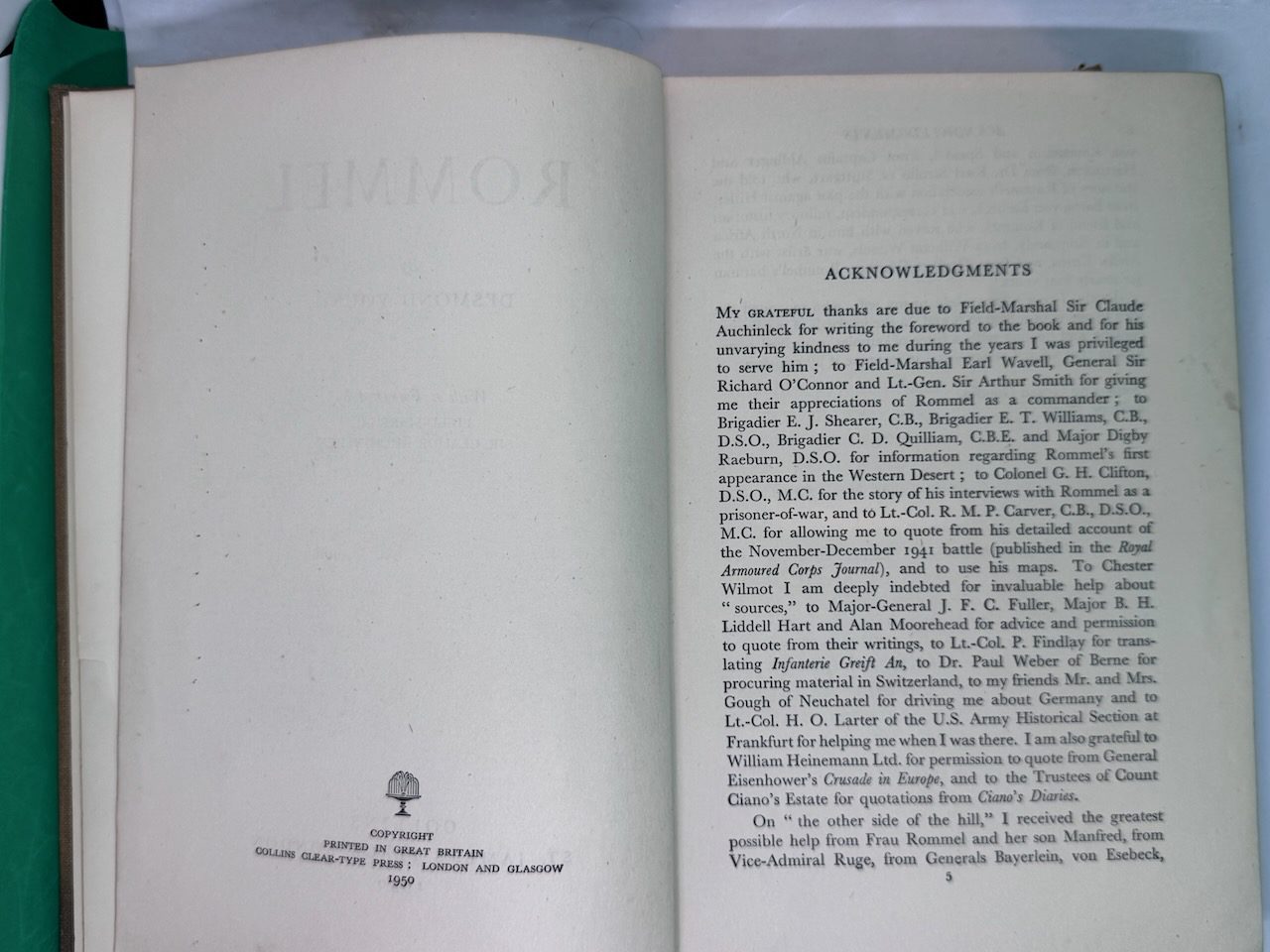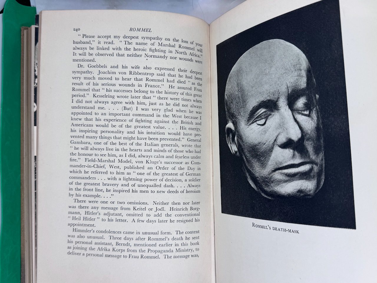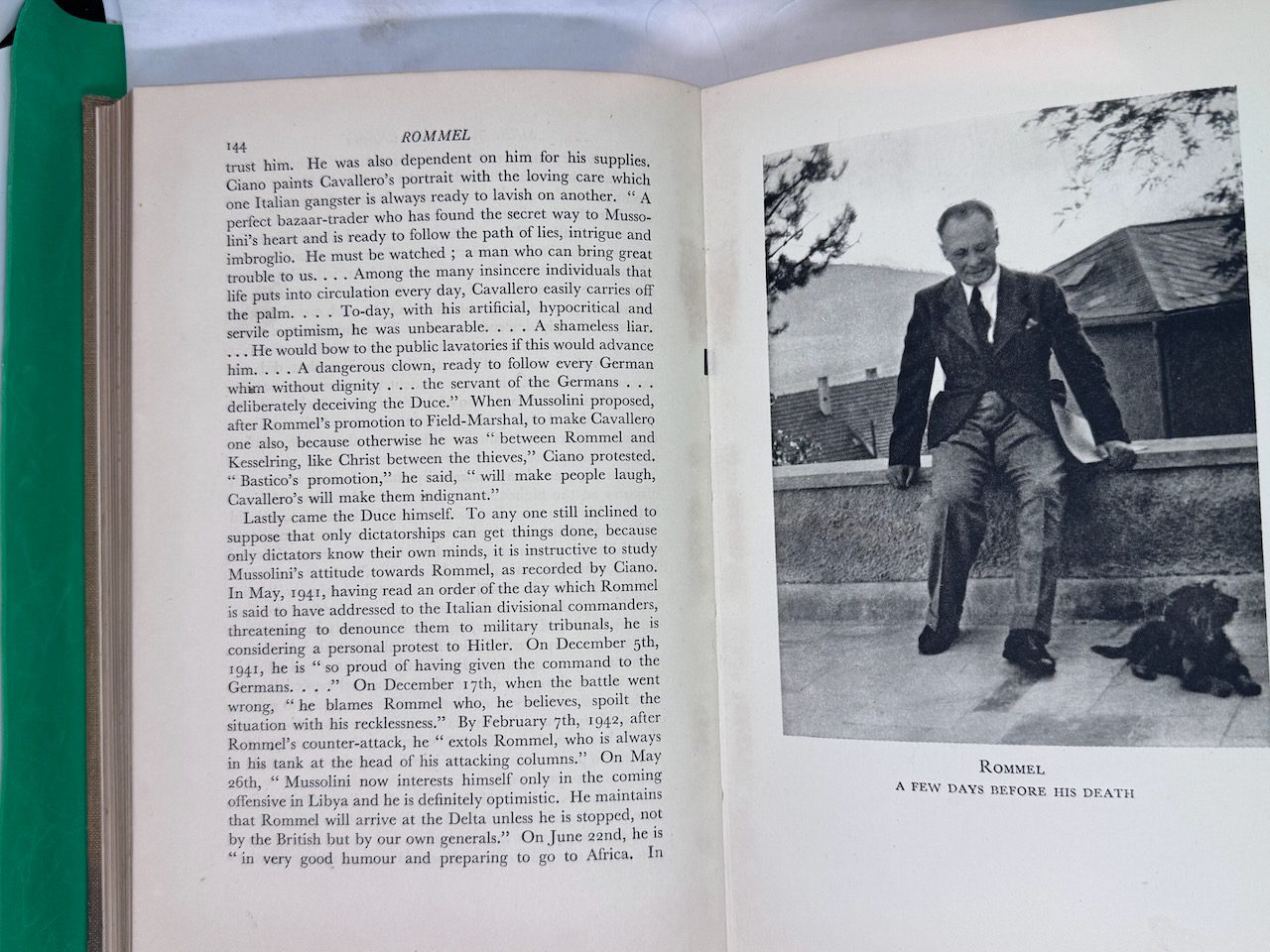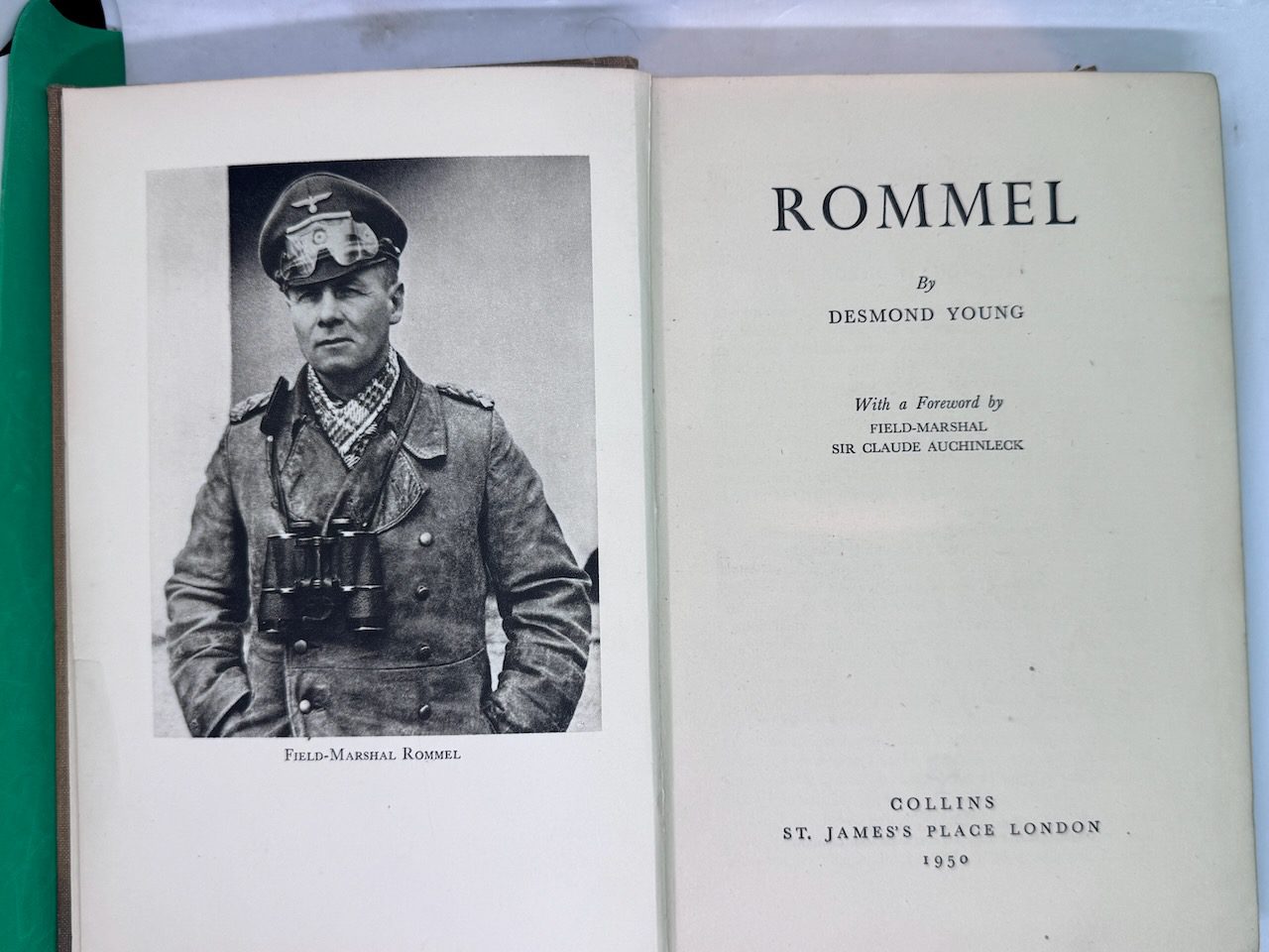 Rommel: The Desert Fox is a 1950 biography of German Field Marshal Erwin Rommel by Desmond Young. The book was the first biography of Rommel and enjoyed immense popularity, especially in Britain. The book led the Western Allies, particularly the British, to depict Rommel as the “good German” and “our friend Rommel”, contributing to the formation of the Rommel myth.. 10 plates on 7, 2 full-page maps in the text and front and rear endpaper maps.