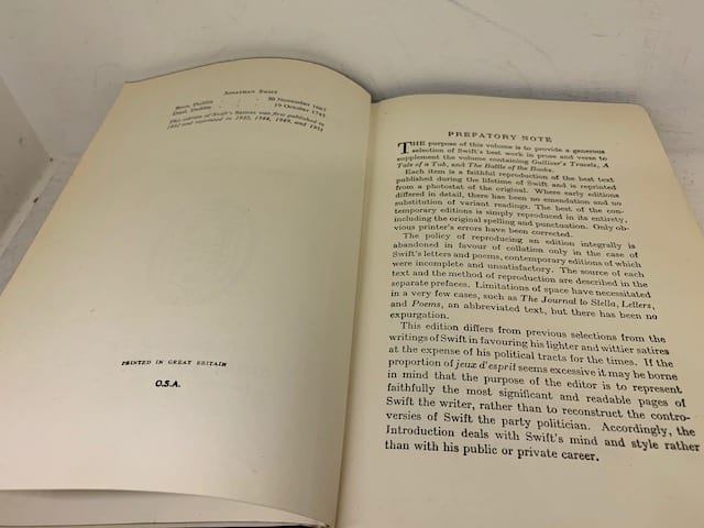 Several Swift essays, combined with letters, prayers and poems. First published with Eddy’s introduction and notes in 1932