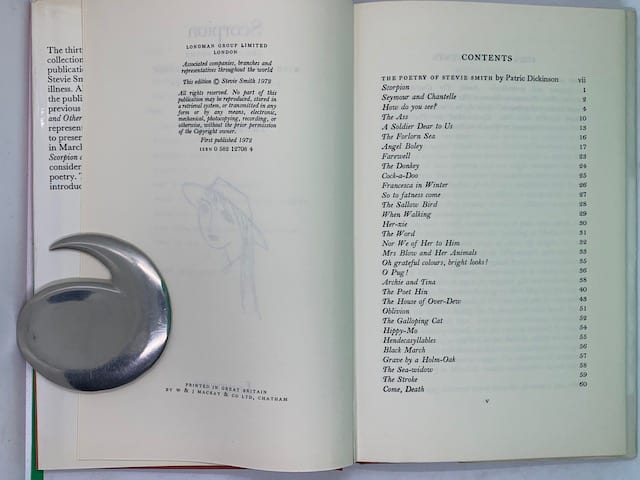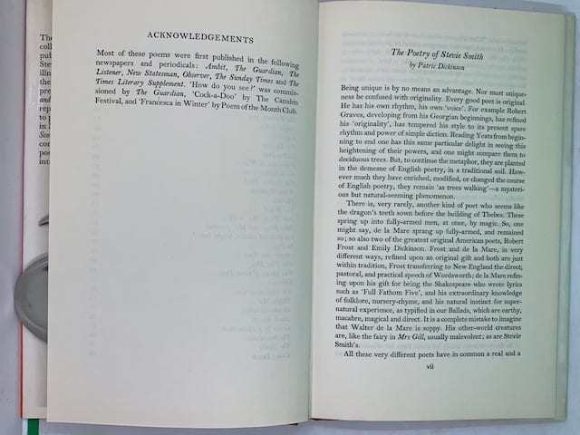 Stevie Smith’s last book of poems, published posthumously the year after she died of a brain tumour. The introduction was written by fellow poet, Patric Dickinson.