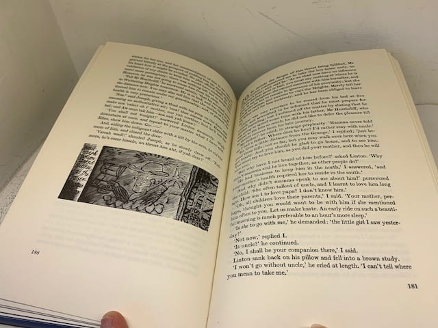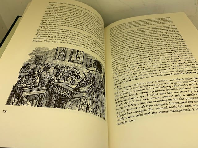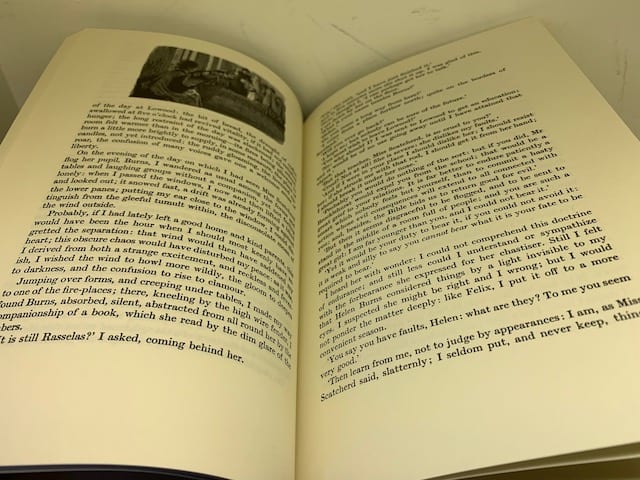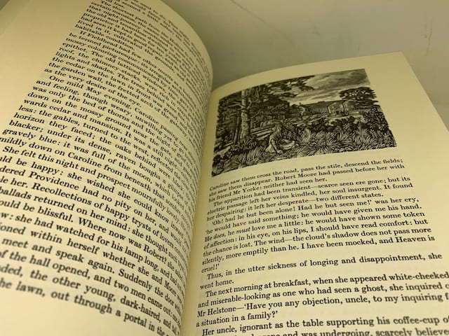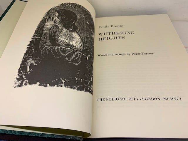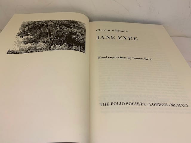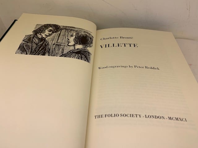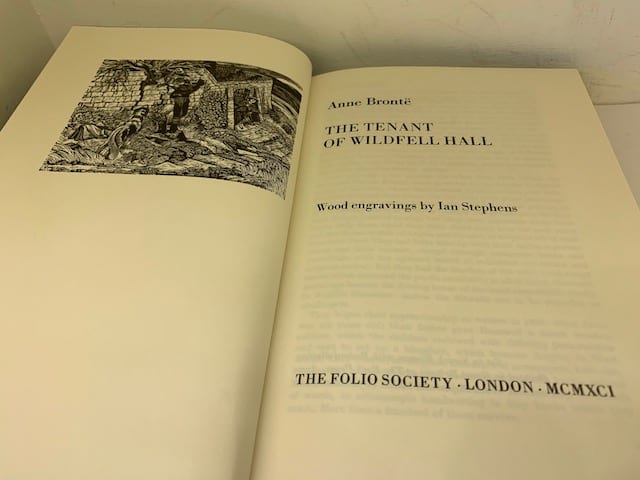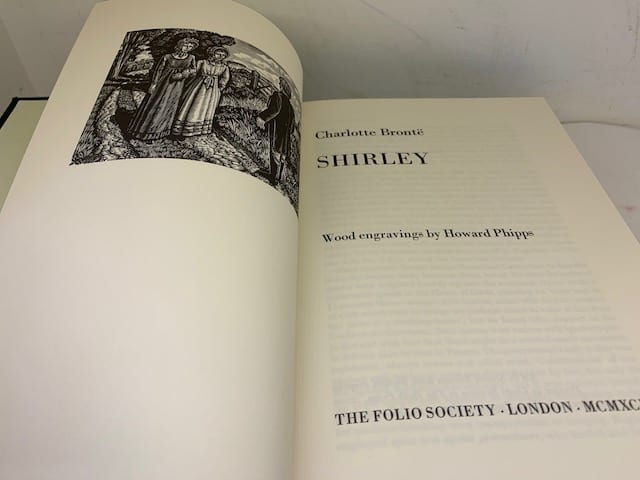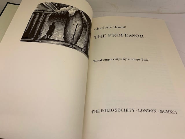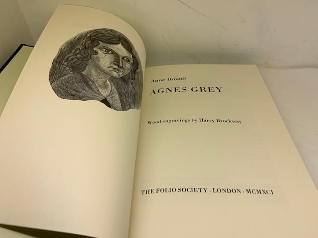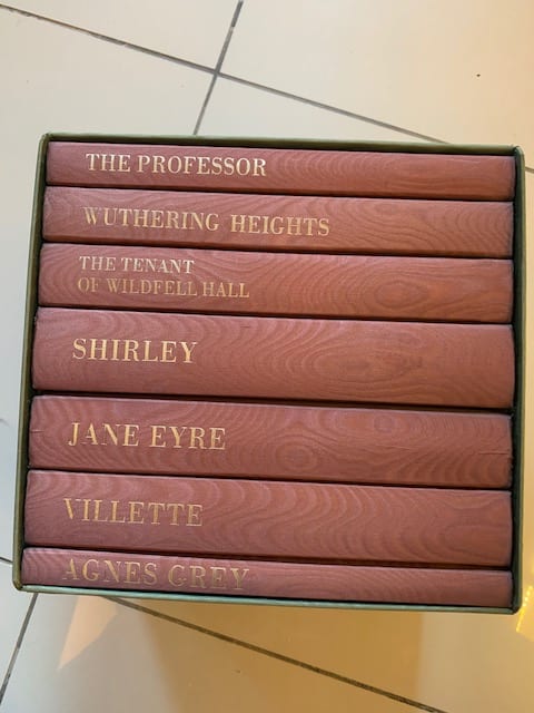 The Brontë sisters’ complete works in a beautiful Folio edition; Agnes Grey 172 pp (illus. Harry Brockway); The Tenant of Wildfell Hall, 385 pp (illus. Ian Stephens), Wuthering Heights, 293 pp (illus. Peter Forster) The Professor 226 pp (illus. George Tute), Villette, 450 pp (illus. Peter Reddick); Jane Eyre, 436 pp (illus. Simon Brett); Shirley, 508 pp (illus. Howard Phipps).