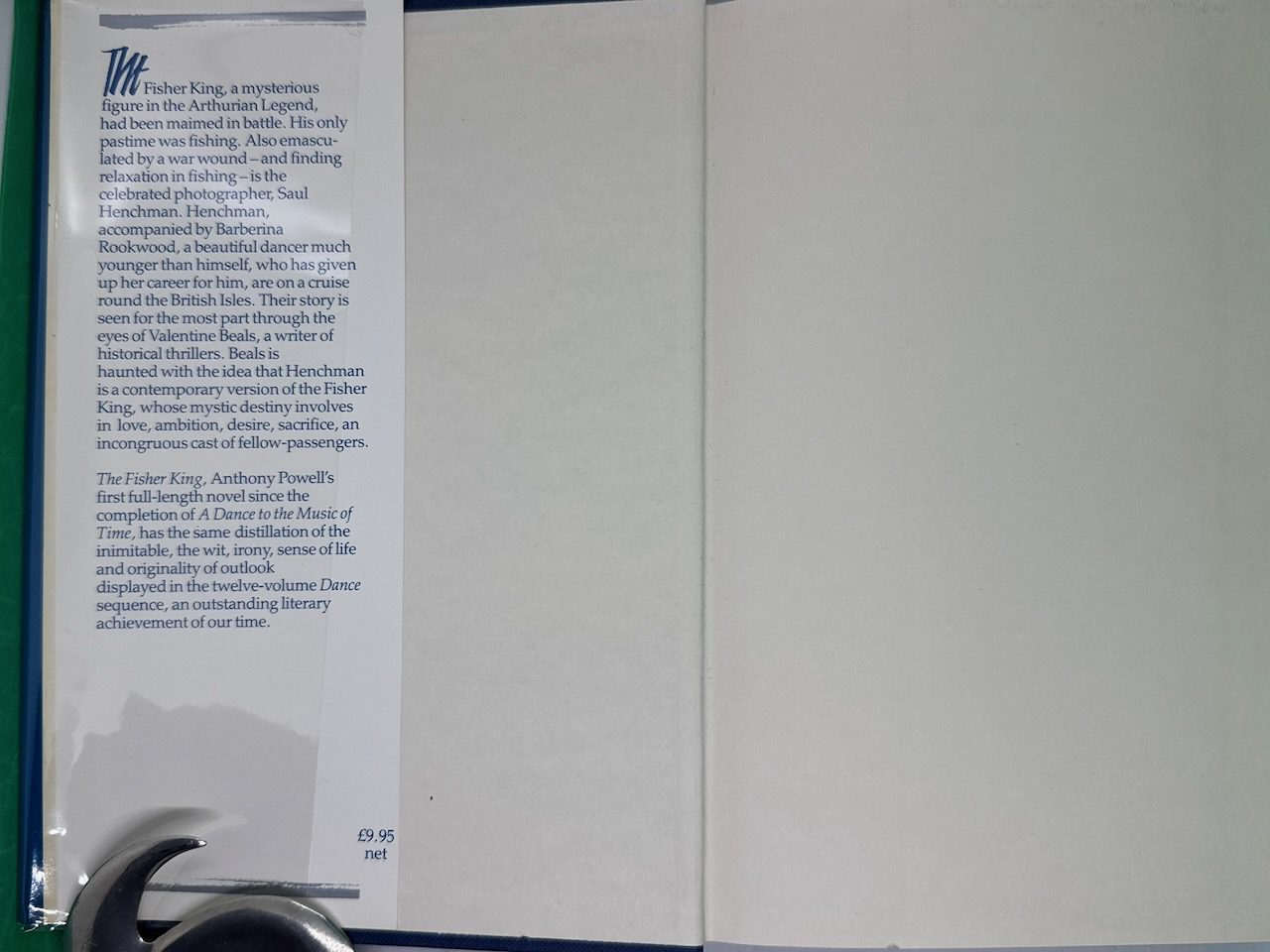 Aboard the Alecto, prolific romance author Valentine Beals ruminates on the ship’s most seemingly incongruous couple: a graceful, ethereal, virginal dancer named Barberina Rookwood and her lover, Saul Henchman, a crippled, emasculated war hero and photographer. Fancifully, Beals imagines Henchman to be the reembodiment of one of the most mysterious Arthurian legends, the Fisher King–the maimed and impotent ruler of a barren country of whom Perceval failed to ask the right questions. A myth with many permutations–and a blurred borderland between them–the Fisher King legend dovetails the various explanations Powell offers from his competing narrators as to why a talented young dancer would forsake her art to care for a feeble older man. Ostensibly a novel about gossip on a cruise ship, The Fisher King is much more: a highly stylized narrative infused with Greek mythology, legend, and satire.