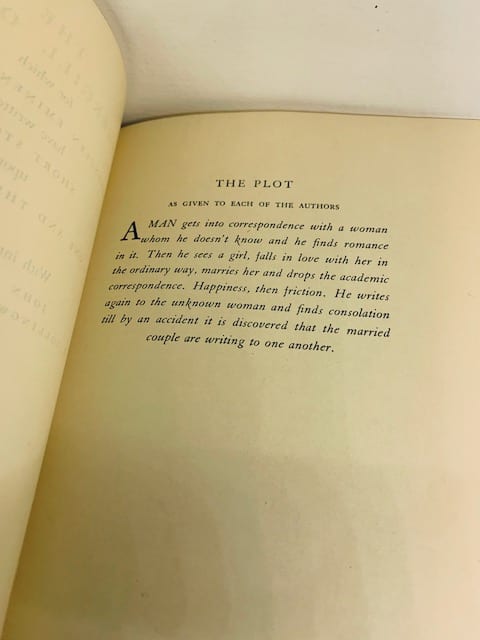 A man gets into a correspondence with a woman whom he doesn’t know and he finds romance in it. Then he sees a girl, falls in love with her in the ordinary way, marries her and drops the academic correspondence. Happiness, then friction. He writes again to the unknown woman and finds consolation till by an accident it is discovered that the married couple are writing to one another.