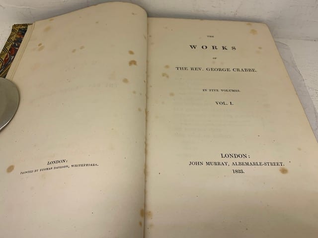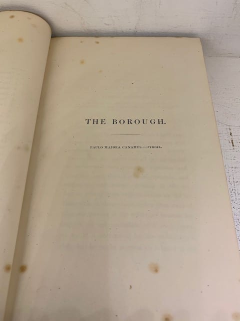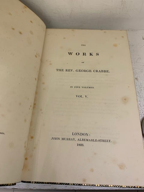 The collected poetry and prose writings of the great poet, surgeon and clergyman, George Crabbe. Published in his lifetime (1754-1832). Complete with engravings. Includes The Borough sequence (the basis of Benjamin Britten’s operatic masterpiece Peter Grimes)